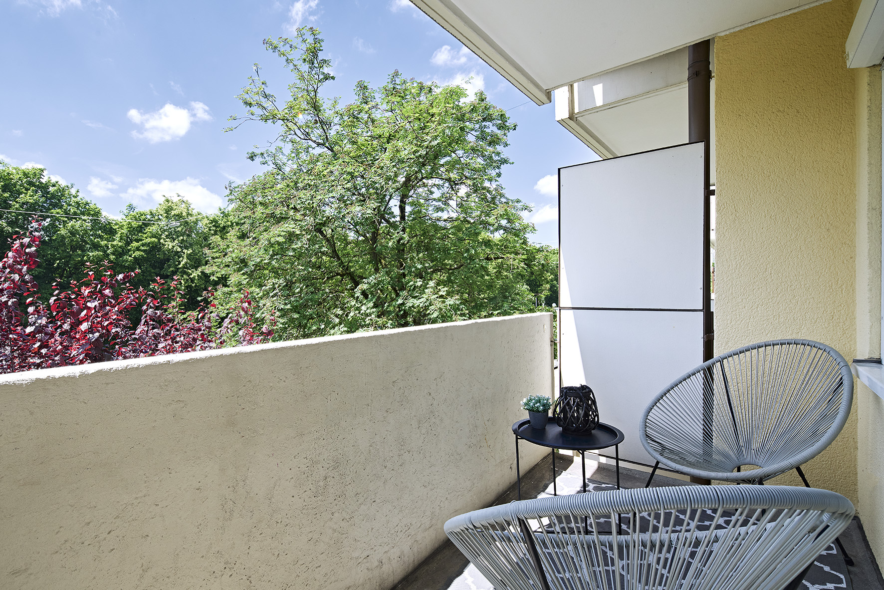 Die Wohnung bietet durch ihre Ost-West-Ausrichtung fast den ganzen Tag Sonne. Diese können Sie auch auf den beiden Balkonen genießen: auf dem Balkon zur West-Seite mit Sonne bis zum Abend oder auf dem Schlafzimmer-Balkon bei einem ersten Kaffee im Freien in der Morgensonne.