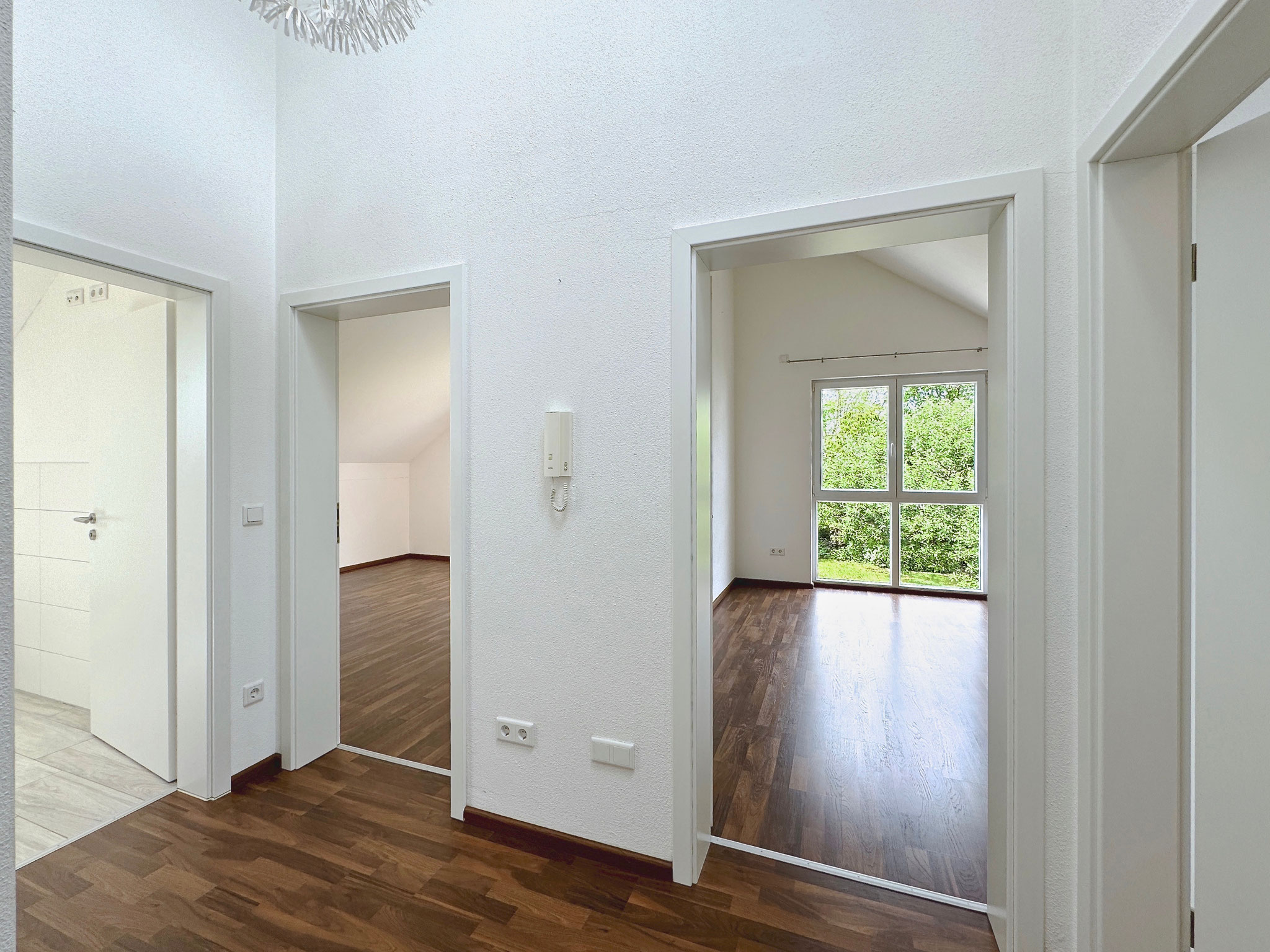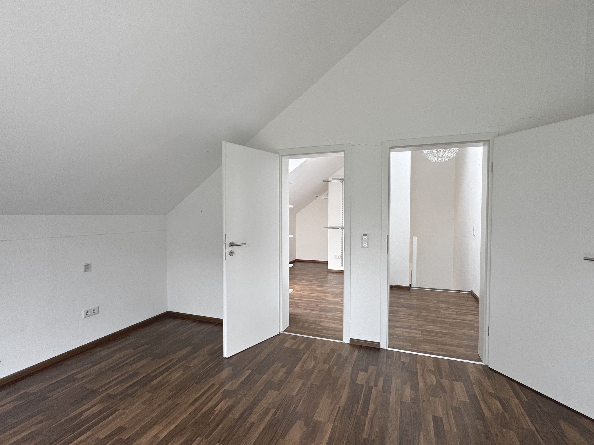 Über eine edle, 2-fach lackierte Holztreppe gelangen Sie ins OG. Hier sorgen teilweise Dachschrägen für ein besonders heimeliges Ambiente. Dabei wurden auch die architektonischen Möglichkeiten eines Dachgeschosses mit beeindruckenden Raumhöhen bestens ausgenutzt.