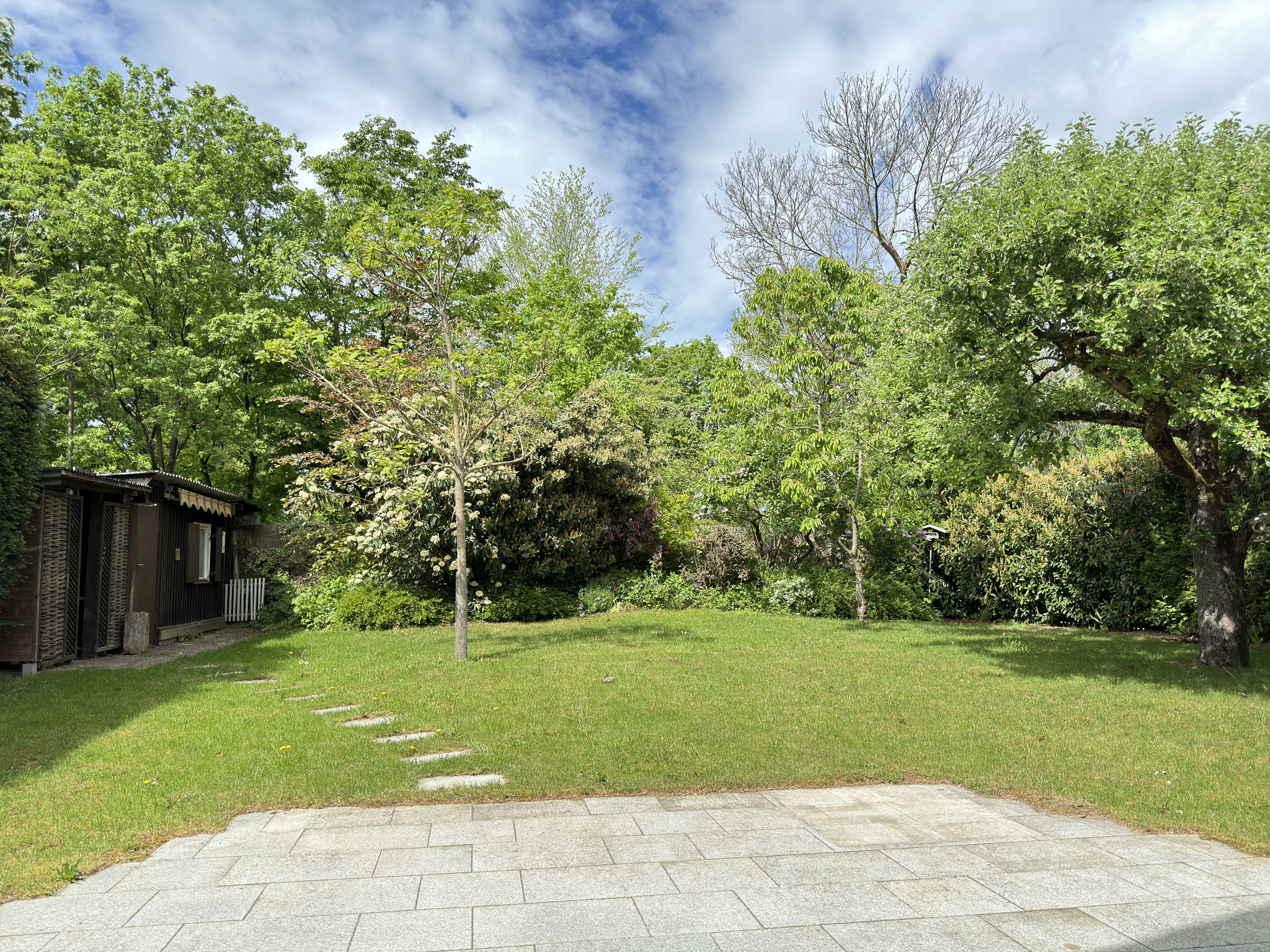 Von diesem Garten-Idyll aus ist die U-Bahn-Haltestelle „Am Hart“ in wenigen Minuten bequem zu Fuß zu erreichen.