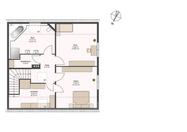 Ein Abstellraum (ggf. auch als zusätzliche begehbare Ankleide nutzbar) rundet das Raumangebot auf dieser Etage ab.
